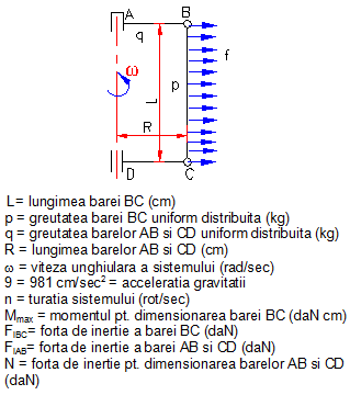 La bara BC, toate punctele au aceeasi acceleratie a= Rω2.